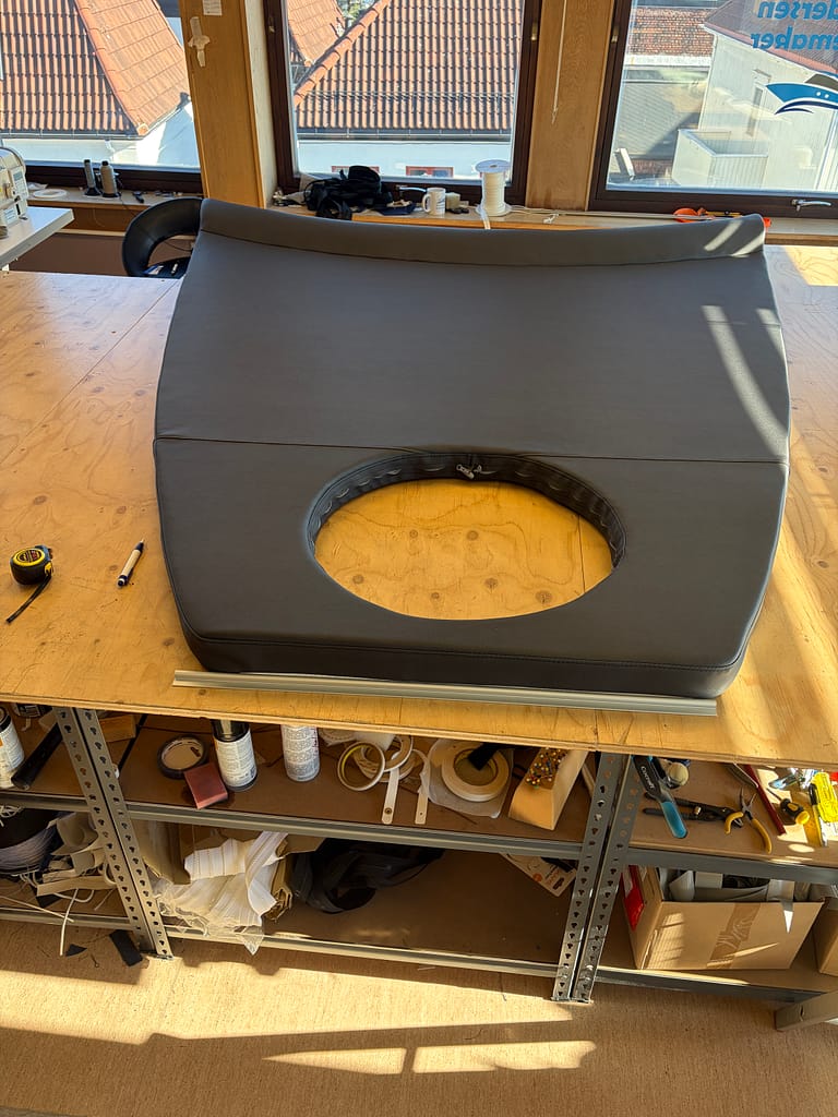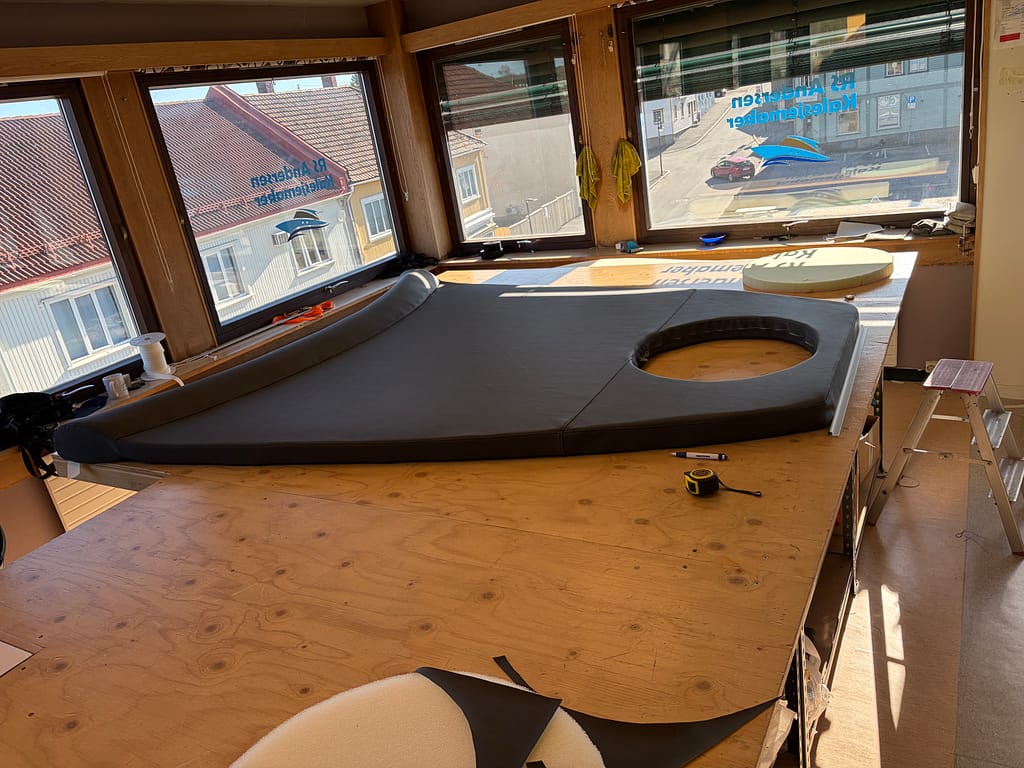 Brukte det gamle skummet og byttet bare trekket for å gjøre dette rimelig. Men resultatet ble jo veldig bra.
