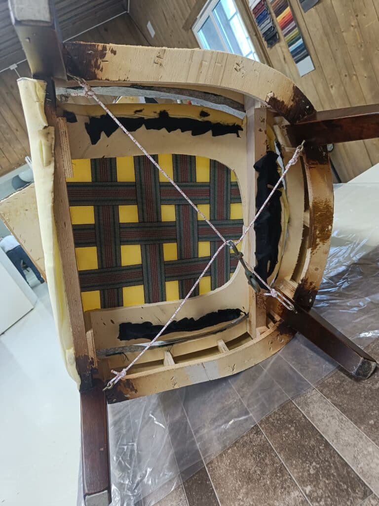 Stolen må bygges opp med ny polstring.